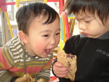 おれっち,持って来たクッピーラムネを赤ちゃんに食べさせてあげようと思ったの。。。
