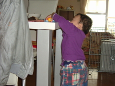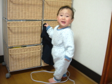 お風呂から上がってから,かぁちゃんの上着を引き出しから出してあげるの♪