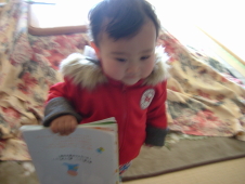 最近のおれっちは,絵本が大好きで,かぁちゃんとスーパーに行く時も,お風呂に入る時も手放さないの<(´∀\)