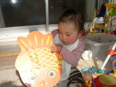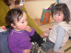 遊び疲れたおれっちは,あいりちゃんのボーロを貪ってるの(;゜;∀;゜;)