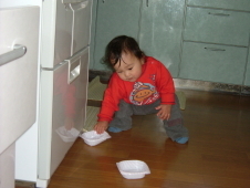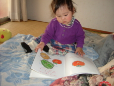 かぁちゃんがお夕飯の準備をする間,ご本を読んで静かに待つの。