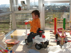 天気が良くなってきたからいつもの様にサンルームで遊んだの_|\○_ ヒャッ ε= \_○ノ ホーウ!!!