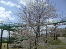 桜の花と滑り台♪