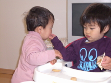 あいちょくんとお菓子の食べさせ合いをしちゃった(*´ェ`*)ポッ